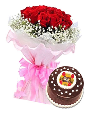 • 紅玫瑰11枝,滿天星、綠葉豐滿+8寸奶油蛋糕